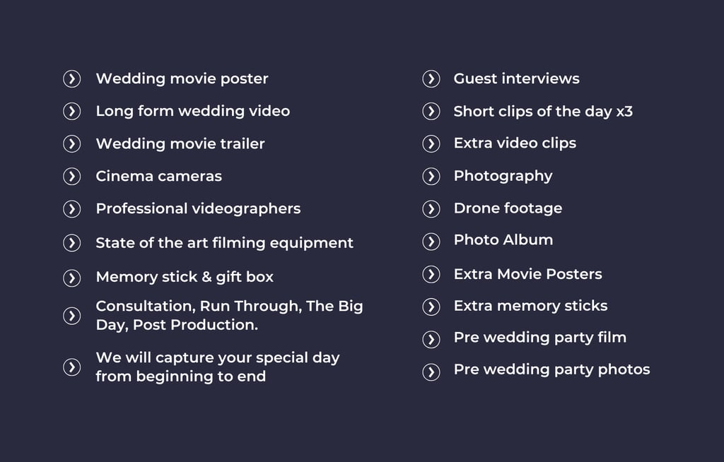 As well as filmmakers, we also offer professional photography services to capture the moments of your special day.